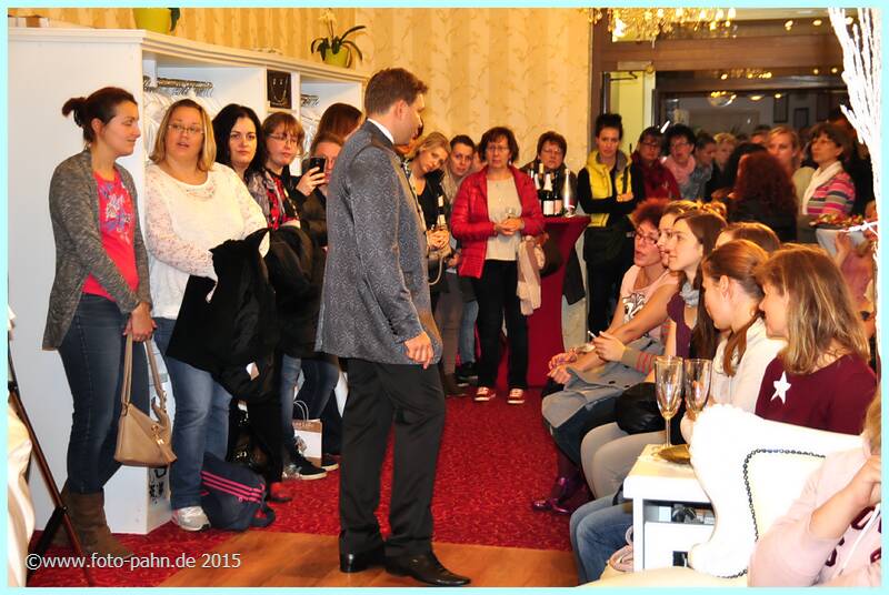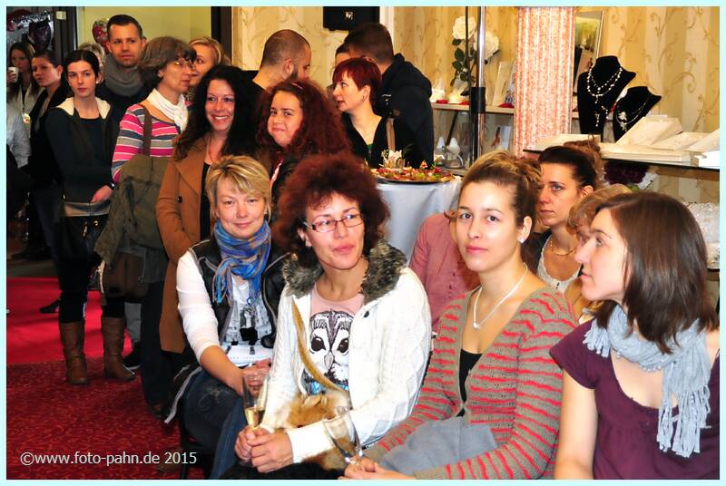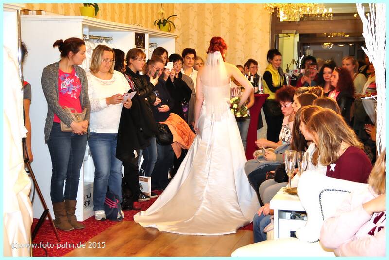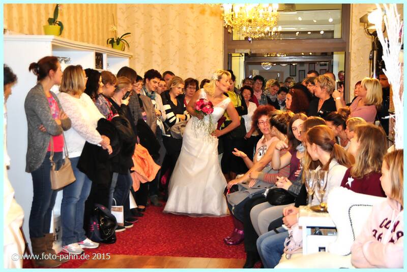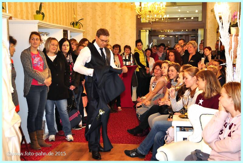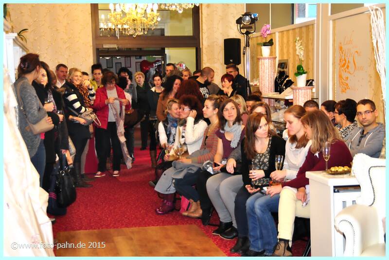 Auch in diesem Jahr nahmen viele langjährige und neue Kunden die Gelegenheit wahr, sich in der Boutique und im Brautstudio über Modetrends für 2016 zu informieren. Zu unserer Tradition gehört auch, dass Partnerunter- nehmen vom Blumenhändler über Friseur, Kosmetik, Schmuck, Musik, Weinhändler bis hin zum Fotografen ihre Angebote präsentierten. |